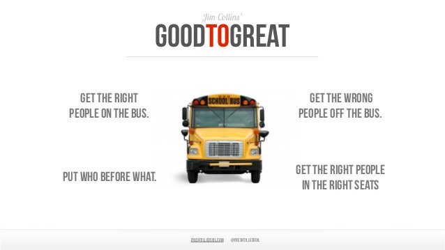 Good To Great Quotes Bus First get the right people on the bus, the wrong people off the : Also, I like to utilize some of these quotes to begin or end my college classes to make a point or to assist students in grasping concepts we are discussing. Great quotes that come from well-known . You’ll also find quotes from musicians like Bob Dylan and Benjamin Franklin “You’re thinking of revolution as a great all-or-nothing. I think of it as one more morning in a muggy cotton .